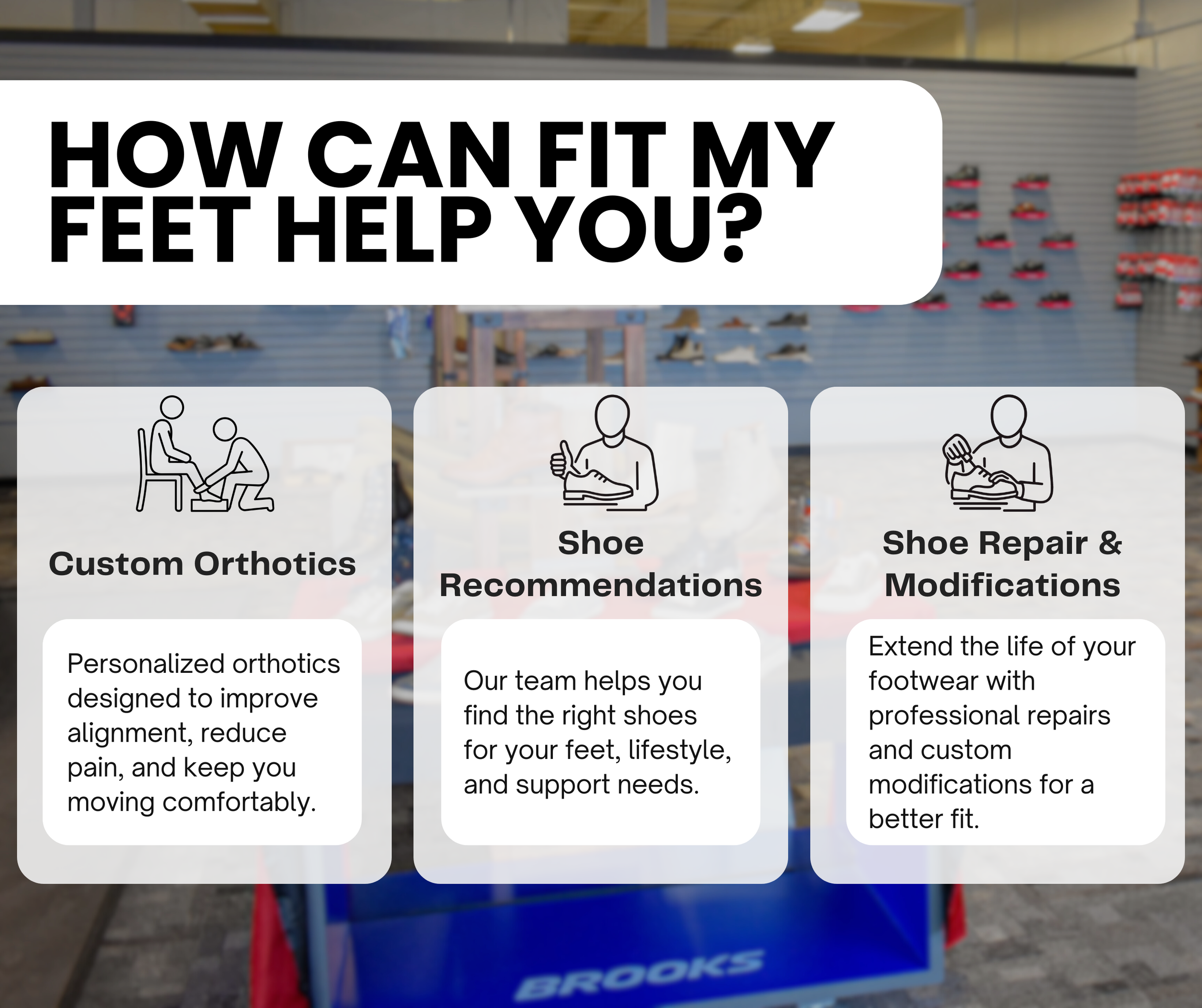 Our in-store services are designed to help customers find the right footwear and support for their specific needs. Our knowledgeable team provides guidance based on foot structure, comfort needs, and lifestyle.
